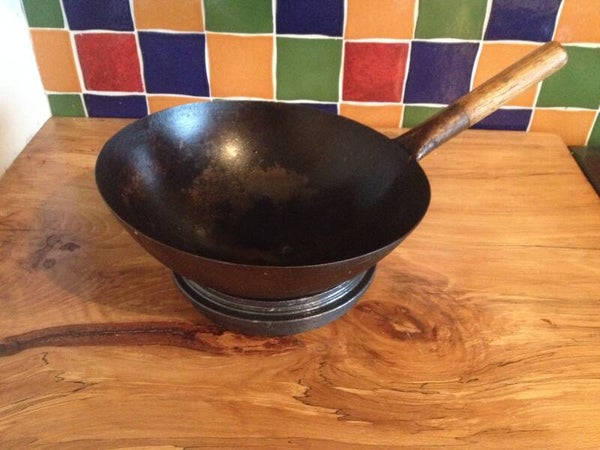 I have a few woks in various sizes, nothing fancy. They are round bottomed woks which require a stand or trivet to keep In a stable position especially if using hot oil. I decided to use a brake calliper as a trivet . I use one side for woks and the other for flat pans .It works well and diffuses the heat at the same time . I may add a timber or upcycled rubber plate underneath for use on delicate Surfaces . These Trivets come in a range of colours and can be customised to suit also .